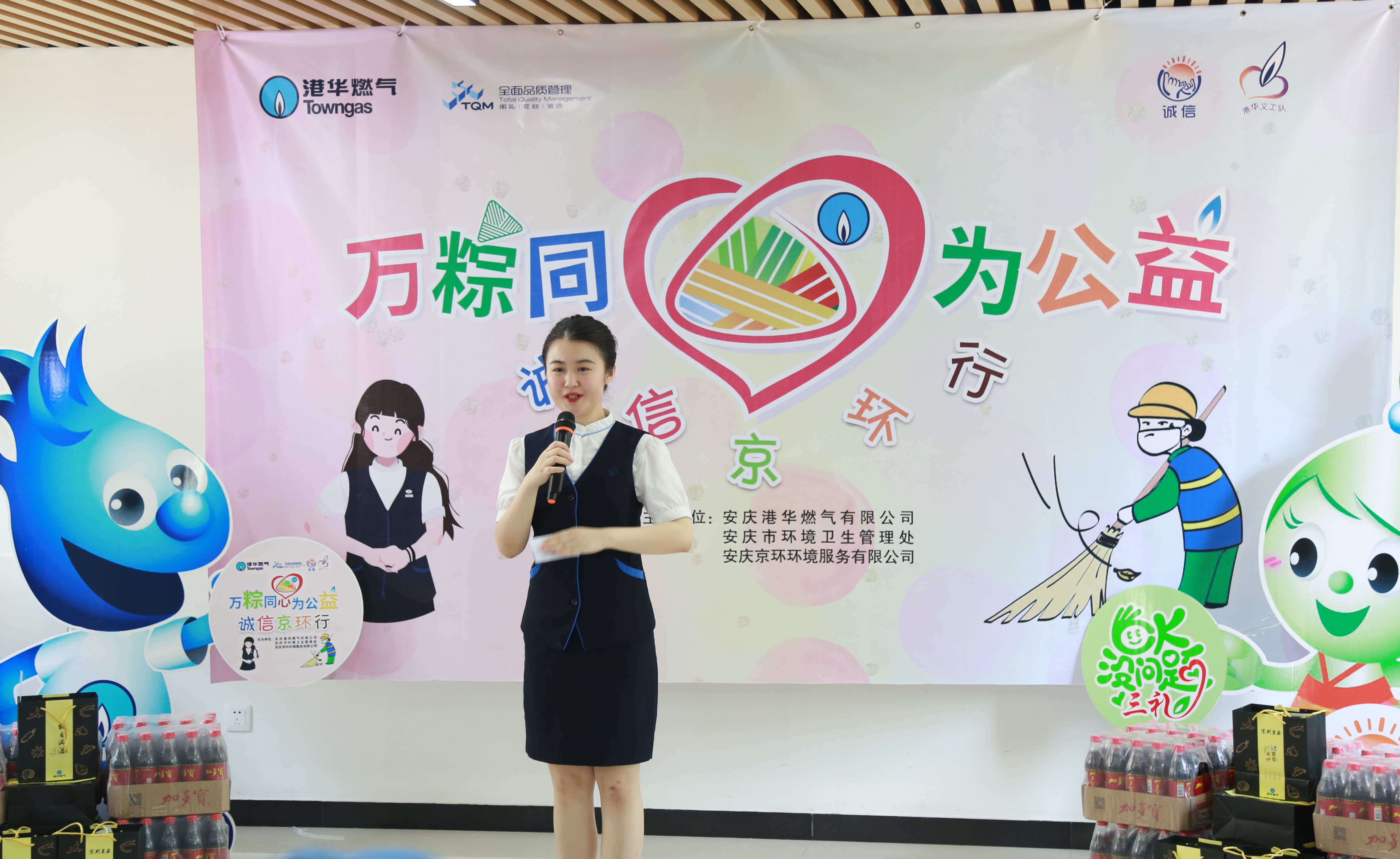 為傳遞社會(huì)正能量,帶動(dòng)更多社群關(guān)注環(huán)保、關(guān)心環(huán)衛(wèi)人員,同時(shí)積極推進(jìn)港華“誠信”文化的社會(huì)傳播,6月4日下午,安慶港華走進(jìn)安慶京環(huán)環(huán)境服務(wù)有限公司,舉辦2019年“萬粽同心為公益”暨“誠信京環(huán)行”活動(dòng)。安慶港華副總經(jīng)理黃蔥蔥、安慶京環(huán)工會(huì)副主席高景利分別為活動(dòng)致辭,安慶港華藍(lán)焰義工隊(duì)員及京環(huán)環(huán)衛(wèi)工代表共50余人參加活動(dòng)。