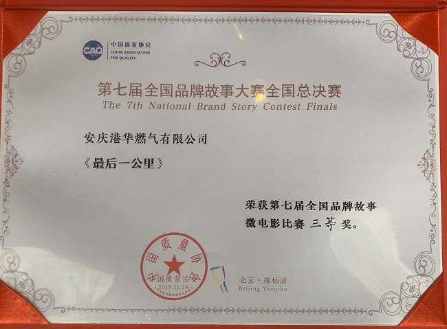 日前,由中國質量協(xié)會主辦、中國質量協(xié)會品牌分會協(xié)辦的2019年品牌創(chuàng)新大會暨第七屆全國品牌故事大賽全國總決賽,在北京成功舉辦。安慶港華選送微電影作品《最后一公里》榮獲全國品牌故事微電影比賽三等獎,選送演講作品《黃梅故里,港華心曲悠揚》榮獲全國品牌故事演講比賽優(yōu)勝獎。