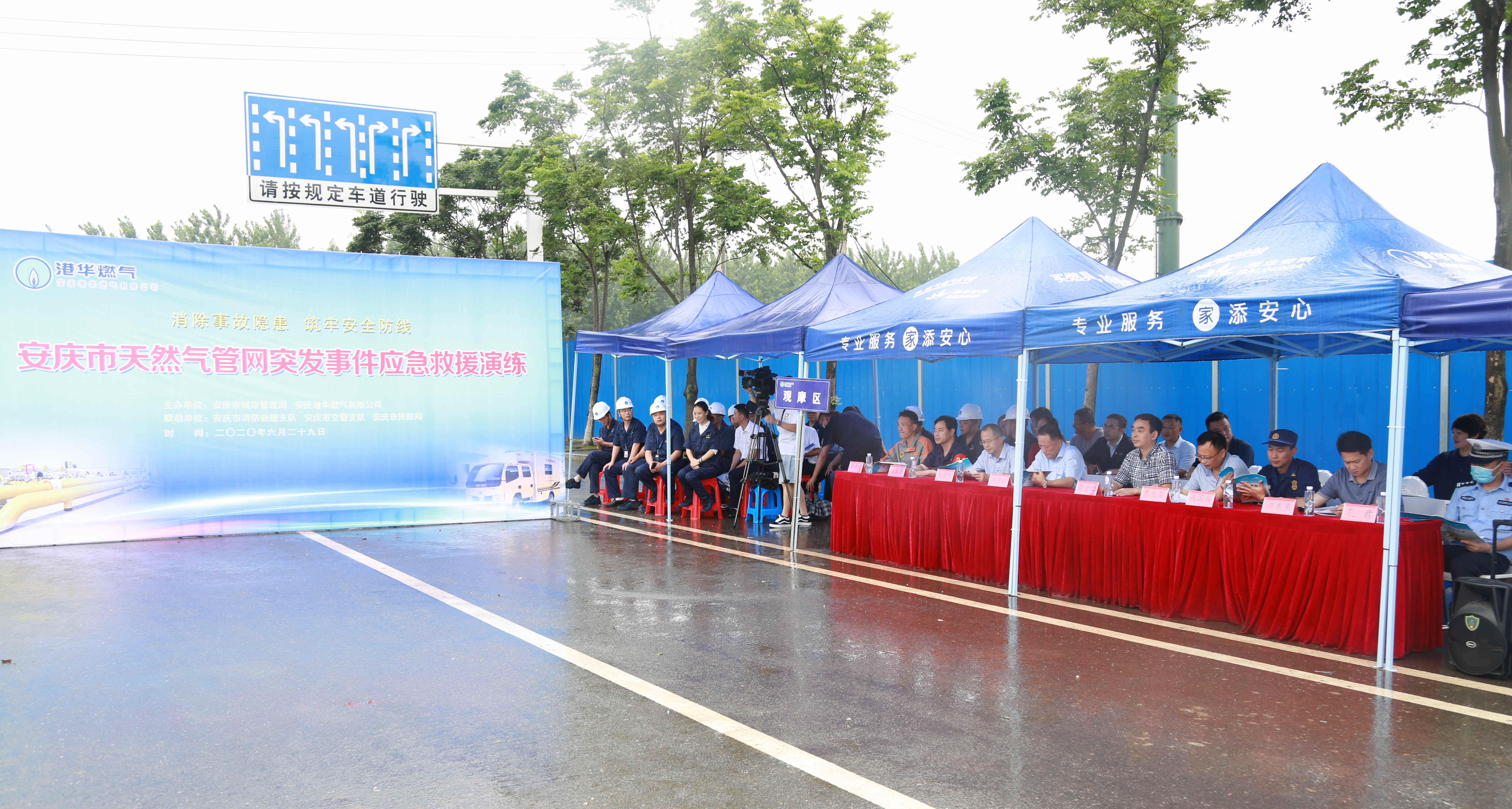 市城管局、應(yīng)急管理局、消防救援支隊(duì)、民防局及城區(qū)液化氣站相關(guān)負(fù)責(zé)人到現(xiàn)場觀摩,安慶港華黨委書記、董事長何族興率公司管理層及公司應(yīng)變小組成員參加演練。