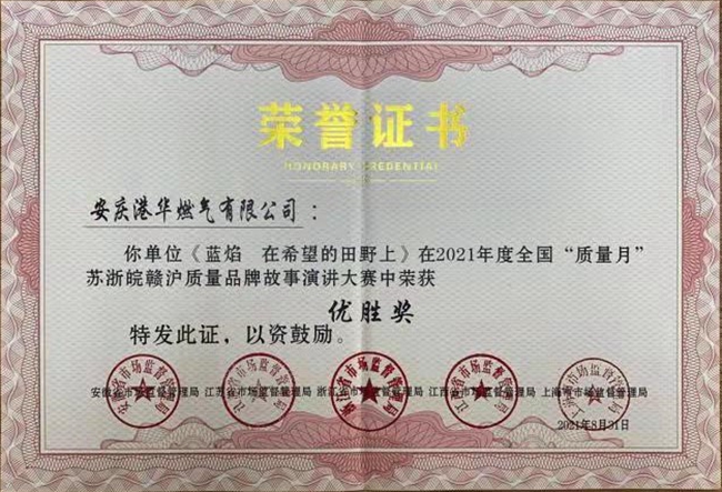 日前,安慶港華燃氣選送演講視頻作品《藍焰 在希望的田野上》榮獲2021年全國“質量月”蘇浙皖贛滬質量品牌故事演講大賽優(yōu)勝獎。