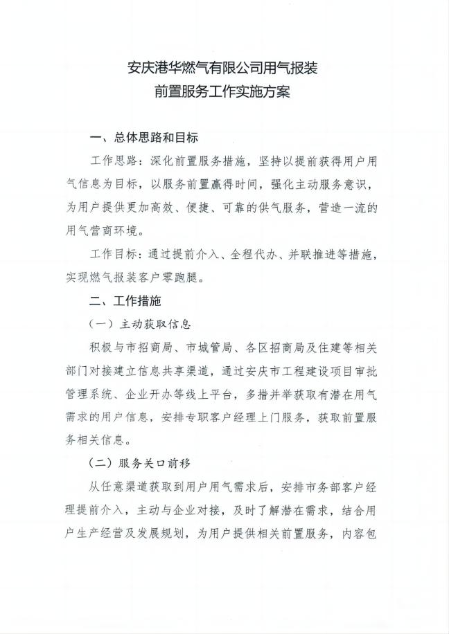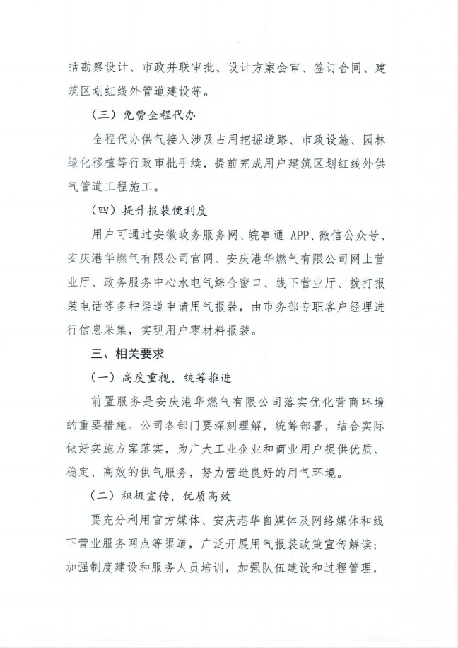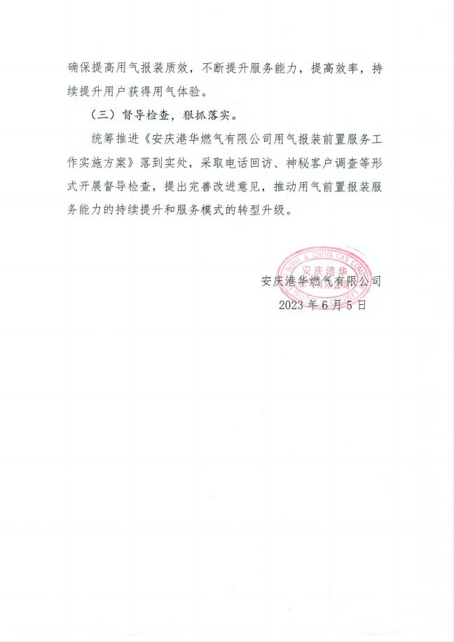 安慶港華燃氣有限公司用氣報裝 前置服務(wù)工作實施方案 發(fā)布時間:2023-06-05    閱讀次數(shù):7817次