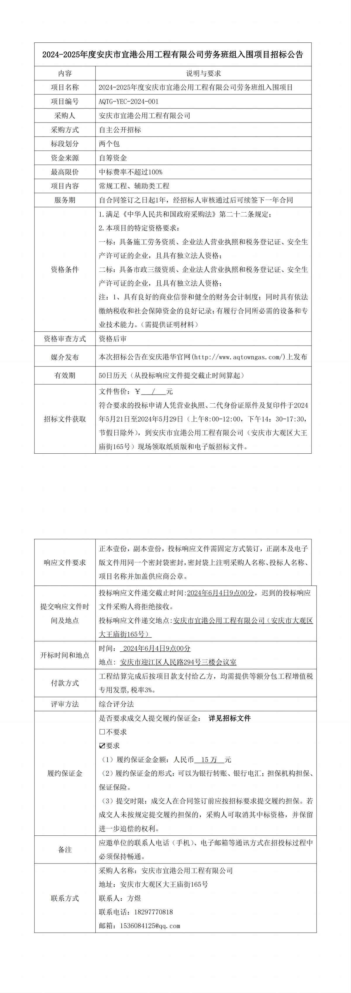 2024-2025年度安慶市宜港公用工程有限公司勞務班組入圍項目招標公告 發(fā)布時間:2024-05-21    閱讀次數:3831次