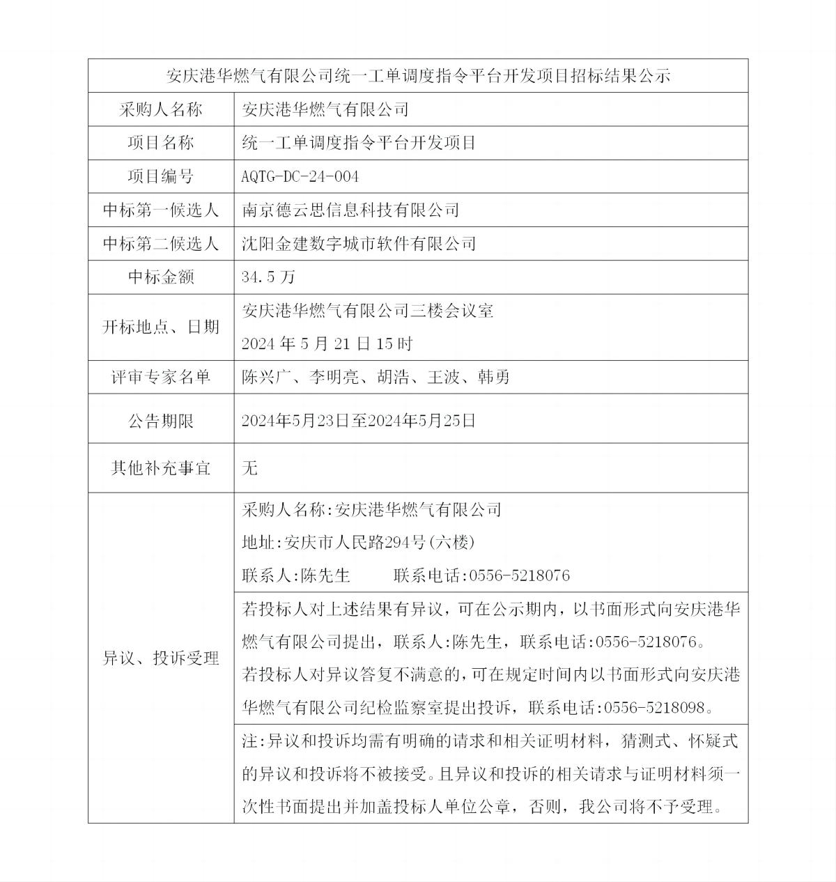 安慶港華燃氣有限公司統(tǒng)一工單調度指令平臺開發(fā)項目招標結果公示 發(fā)布時間:2024-05-22    閱讀次數(shù):3729次