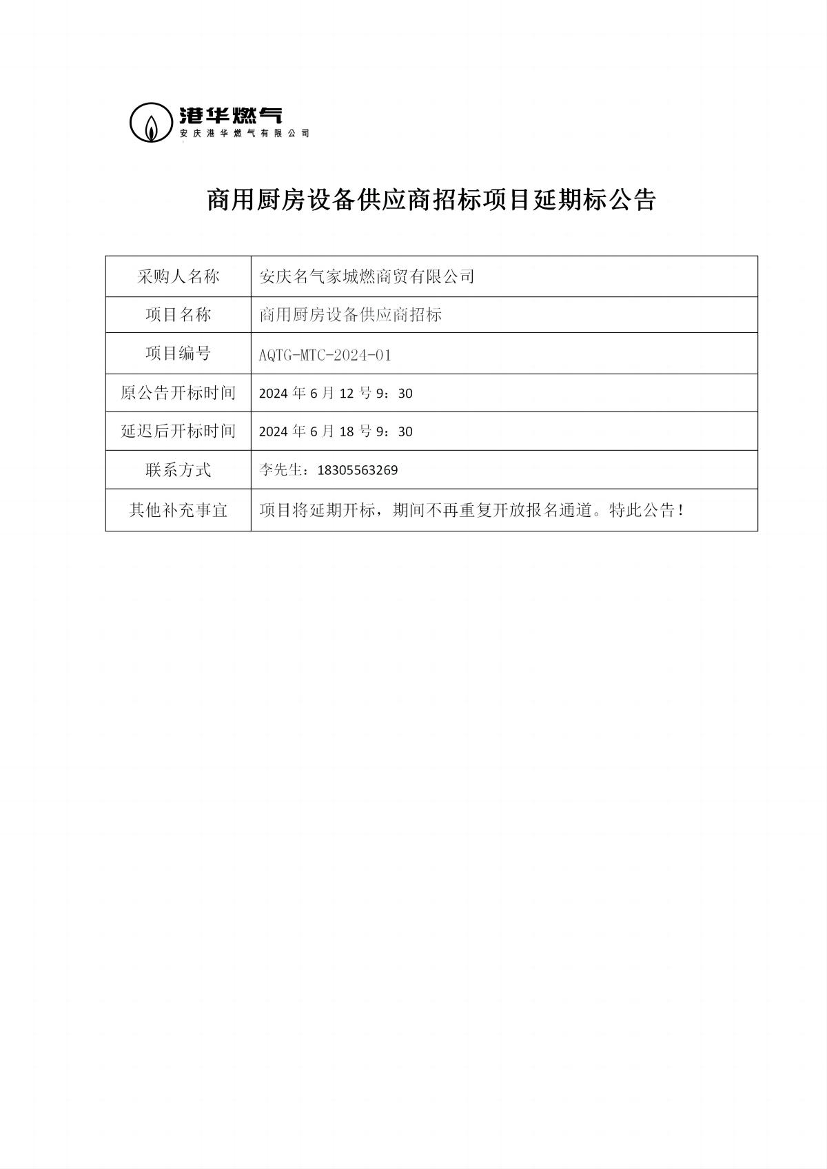 商用廚房設(shè)備供應(yīng)商招標(biāo)項目延期標(biāo)公告 發(fā)布時間:2024-06-12    閱讀次數(shù):3770次