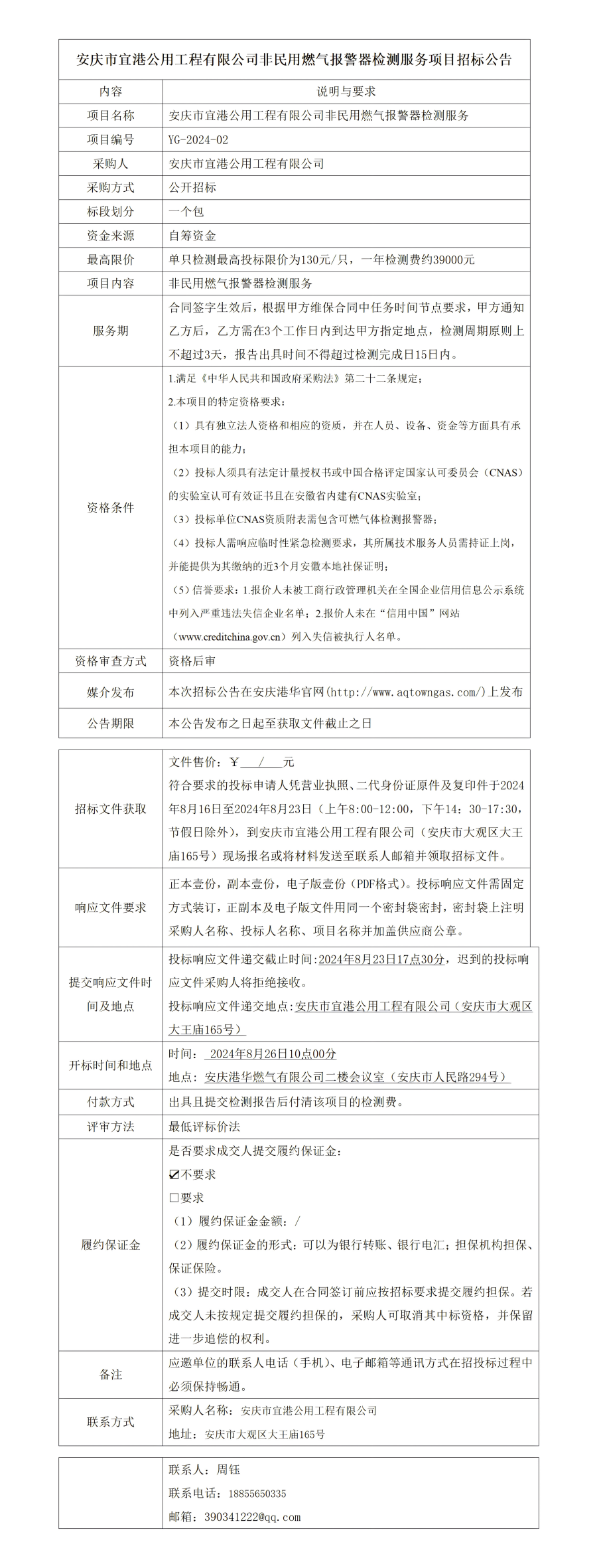 安慶市宜港公用工程有限公司非民用燃?xì)鈭?bào)警器檢測(cè)服務(wù)項(xiàng)目招標(biāo)公告