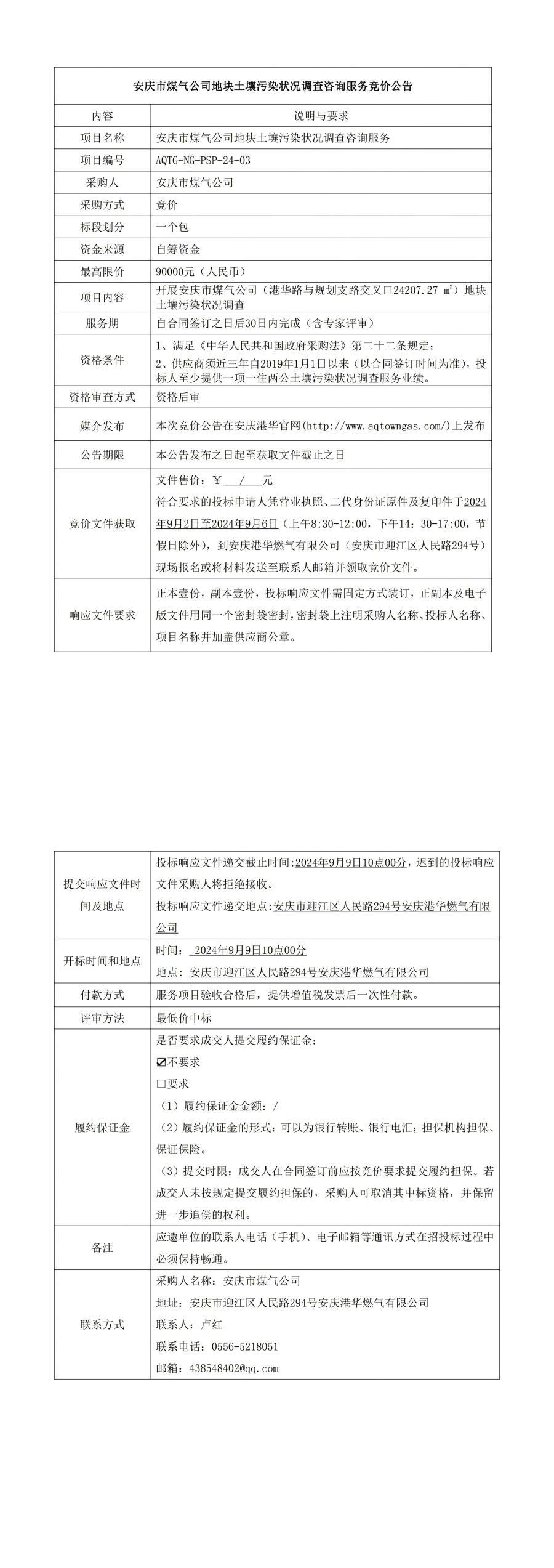 安慶市煤氣公司地塊土壤污染狀況調(diào)查咨詢服務(wù)競價公告