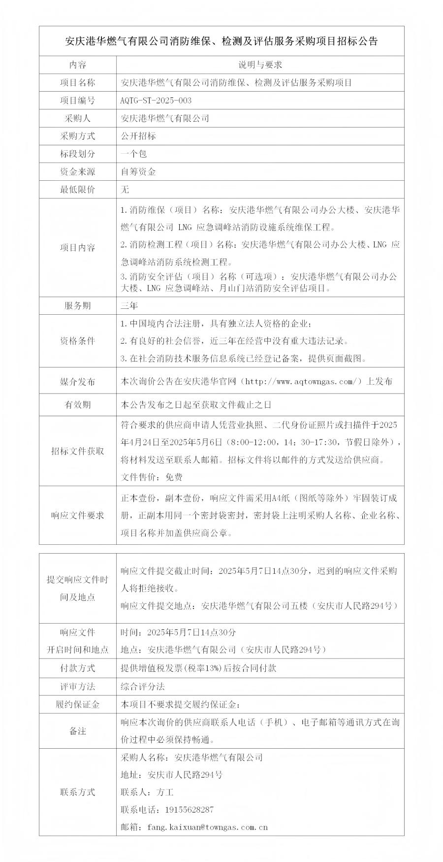 安慶港華燃?xì)庥邢薰鞠谰S保、檢測及評估服務(wù)采購項(xiàng)目招標(biāo)公告 發(fā)布時(shí)間:2025-04-27    閱讀次數(shù):1795次