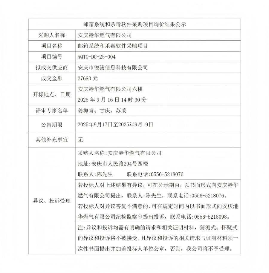 郵箱系統(tǒng)和殺毒軟件采購項目詢價結果公示