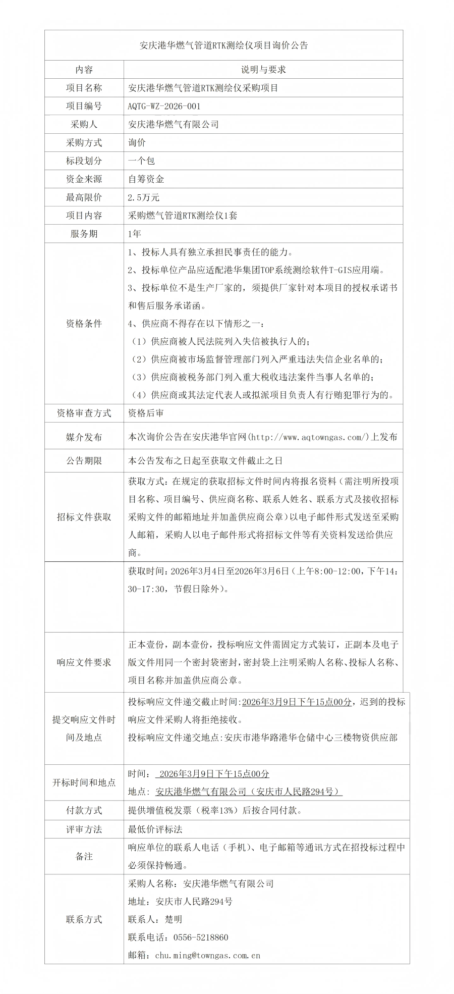 安慶港華燃?xì)夤艿繰TK測繪儀項(xiàng)目詢價(jià)公告 發(fā)布時(shí)間:2026-03-04    閱讀次數(shù):57次