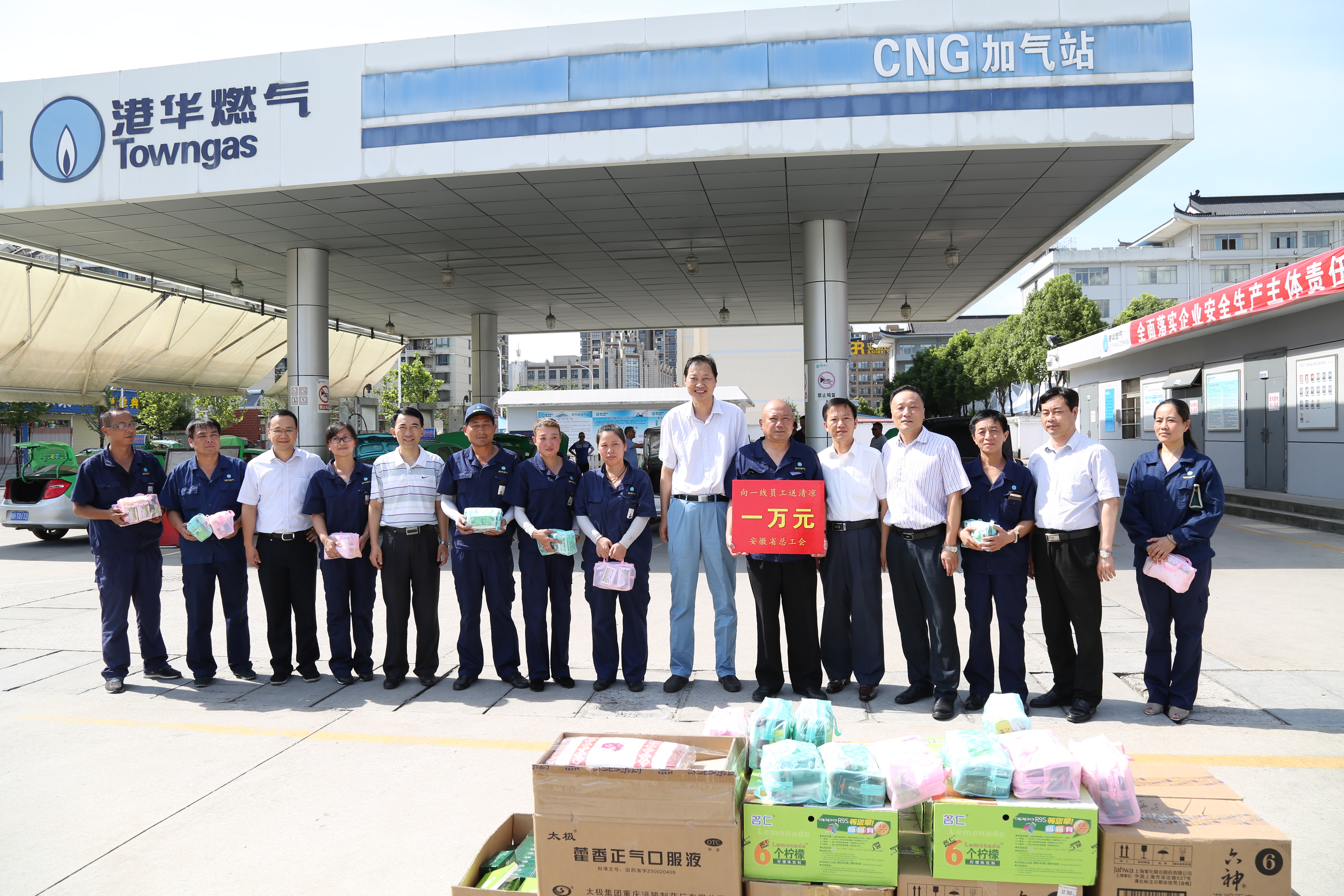 7月18日下午,安徽省總工會黨組成員、經(jīng)審會主任胡東輝一行在市總工會黨組書記、常務(wù)副主席楊林建,副主席吳丹等陪同下,冒著酷暑來到港華路加氣站開展夏季送清涼慰問活動。面對堅守在高溫崗位上的一線員工,胡主任對他們冒高溫、戰(zhàn)酷暑的精神表示問候和敬意。安慶港華董事長何族興、總經(jīng)理謝業(yè)清等人員參加慰問活動。
